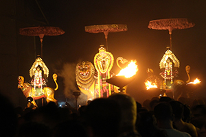 We hebben het zo gepland dat we enkele feesten kunnen meemaken, te beginnen in Kandy. Dit is een week lang het toneel van lange parades met olifanten, dansers en acrobaten. Heel mooi om mee te maken, al is het ontzettend druk! Dit wordt echter qua sfeer overtroffen door de Hindoestaanse feesten in Jaffna, helemaal in het nog nauwelijks toeristische noorden van Sri Lanka. Hier zijn het vooral beelden en symbolen die rond de tempels worden gedragen, omgeven door fakkels en rook, gevolgd door een prachtig uitgedoste mensenmassa. |