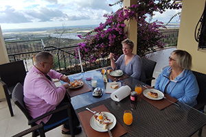 Het echte toeristenseizoen was nog niet aangebroken, dus de met grote hotels volgebouwde kuststreek was nog lekker rustig. De villa ligt op een bergrug, het laaglang overkijkend. Helaas is bij recente bosbranden de meeste vegetatie verbrand. Jammer, anders was het uitzicht nog fraaier geweest. |